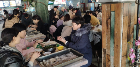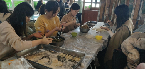 当天上午10点半活动正式开始,擀皮、包饺子等工序都在小餐厅一楼井然有序的进行着。大家分工协作,齐手上阵,在自己擅长的环节忙碌着。大家一边忙得不亦乐乎,一边围绕着生活和工作等方面进行轻松交谈,处处洋溢着喜悦。在大家的分工合作下,一个个饺子被整齐的排列在托盘上,一碗碗热腾腾的饺子在期待中被端上餐桌,大家品尝美食的同时也感受着寒冬里集体的温度。阳光徐来,寒冷将去。饺子虽小,但却传递着冬日里的温暖,营造了浓厚的隆冬氛围。
