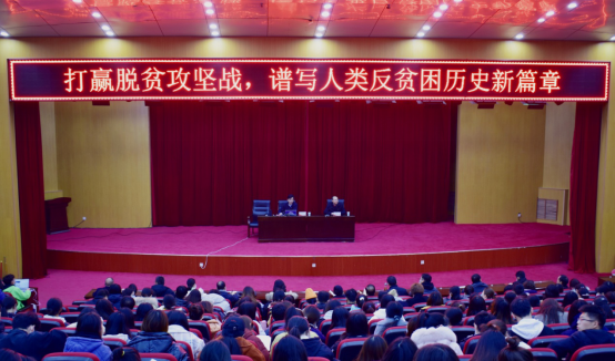 12月10日下午,校纪委书记、监察专员李中华教授在英才校区学术报告厅讲授题为“打赢脱贫攻坚战,谱写人类反贫困历史新篇章”专题党课。学校全体纪检监察干部、巡察干部,KY开元集团官网、包装与印刷工程学院和信息工程学院全体师生党员聆听本次党课。本次党课由KY开元集团官网党委书记陈复昌主持。