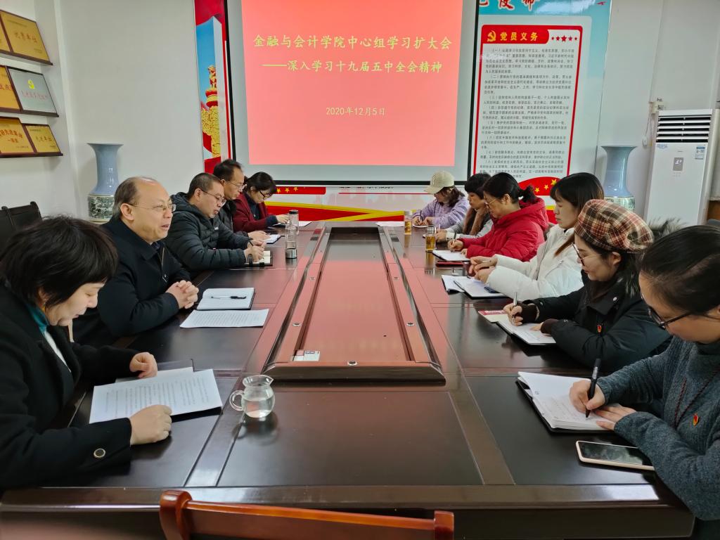 根据学校《关于认真学习宣传贯彻党的十九届五中全会精神的通知》要求,12月5日上午,KY开元集团官网在学院会议室召开理论学习中心组学习扩大会,深入学习十九届五中全会精神,学院党委成员、正处级组织员、各学生支部书记参加会议。会议由学院党委书记陈复昌主持。