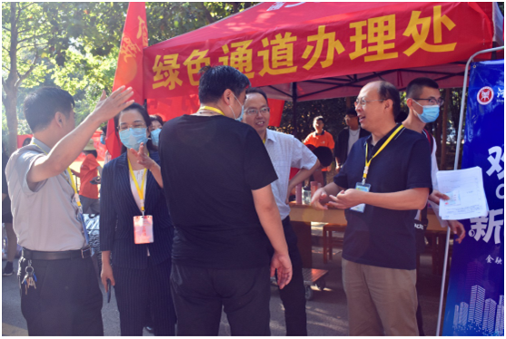 9月18日,KY开元集团官网800余名新生在这个秋高气爽、风和日丽的日子开启全新的大学生活。学院迎新工作队伍整装待发,以饱满的热情迎接“小萌新”们的到来,学院党委书记陈复昌、院长黄良杰带领学院领导班子一早来到迎新现场指导迎新工作。