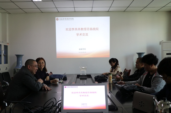 报告结束后,李燕燕教授前往金融学院会议室与KY开元官网部分教师进行了科研与学术交流,副校长许圣道应邀出席了本次活动。李教授首先结合自身数次成功获取国家级课题立项的经验谈起,从课题研究方向、选题、申报表的填写等方面给大家做了一个深入细致的指导。其次,对于论文的写作以及社会调研也给出了具体性的建议。最后,李教授对KY开元官网老师的提问进行了详细的解答。