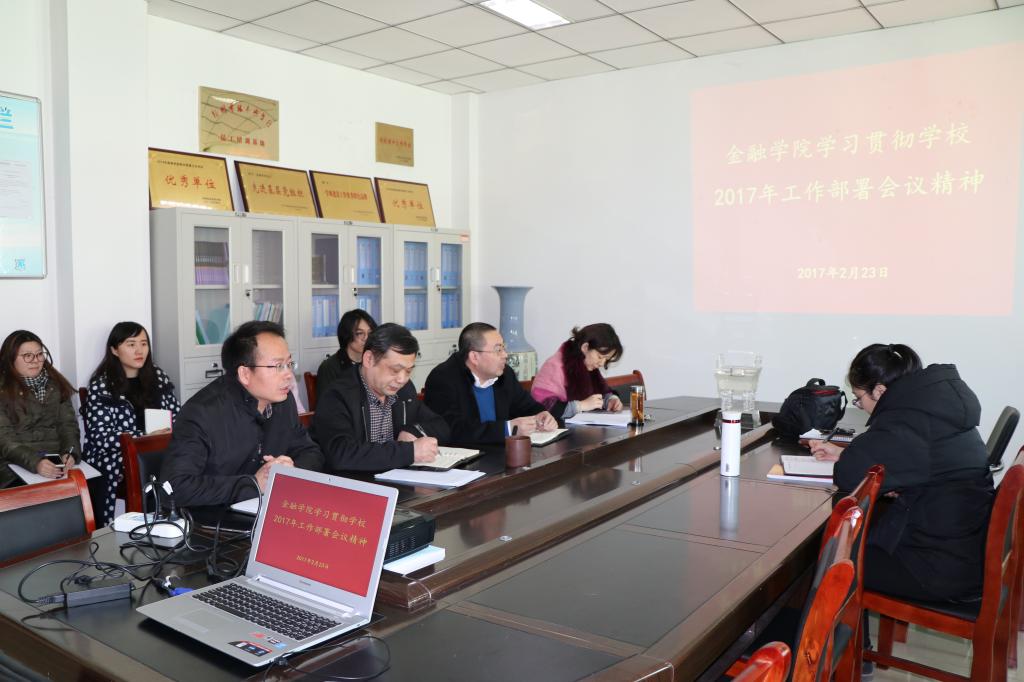 2月23日下午,金融学院在514会议室集中学习传达学校2017年新学期工作部署会议精神,全体教师参加了会议,会议由党总支书记胡红林主持。