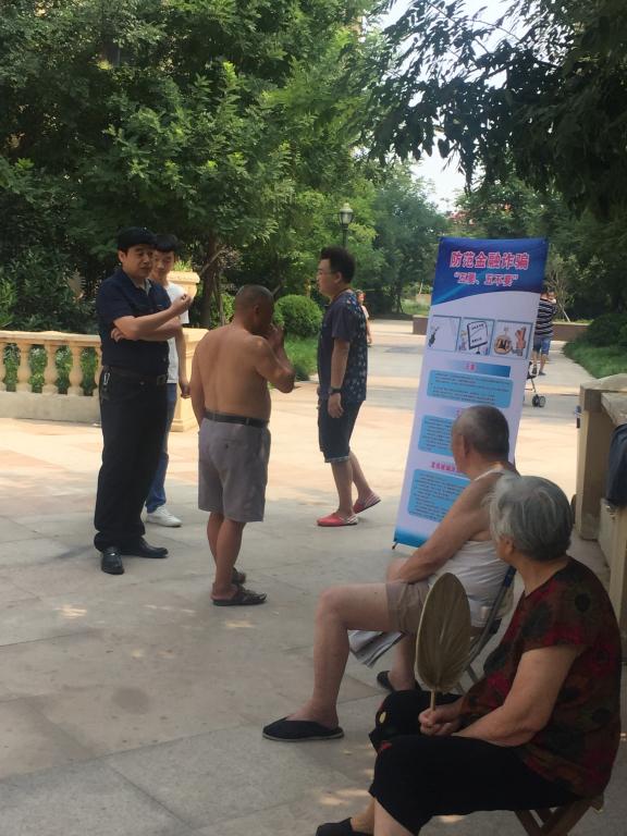 为贯彻落实学校《关于开展党员志愿者进社区集中服务月活动的通知》文件精神,以实际行动庆祝建党95周年,金融学院党政领导结合本院学科专业教育优势及特点,带领金融学院党员志愿者于7月6日上午顶着烈日,冒着酷暑走进颐河原筑社区,向社区居民宣传金融诈骗类型和相关防范知识。