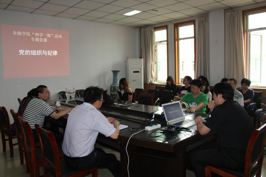 6月2日下午3:00在金融学院会议室召开全院教师理论学习会,金融学院党总支书记席波做了题为《党的组织与纪律》的专题党课。