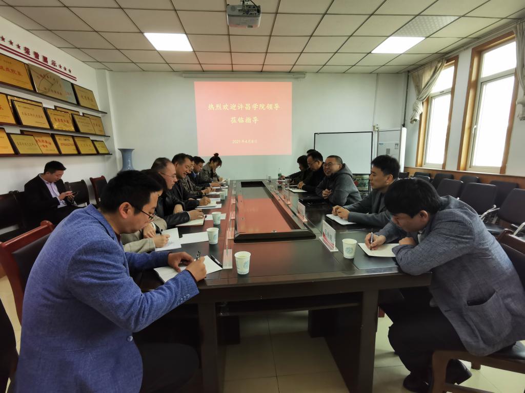 4月8日上午,许昌学院商学院院长张新铭一行到KY开元官网考察交流,交流会在KY开元集团官网514会议室召开,KY开元集团官网院长黄良杰、副院长贾宪军、王培玲、副书记汪晓伟参加交流会。