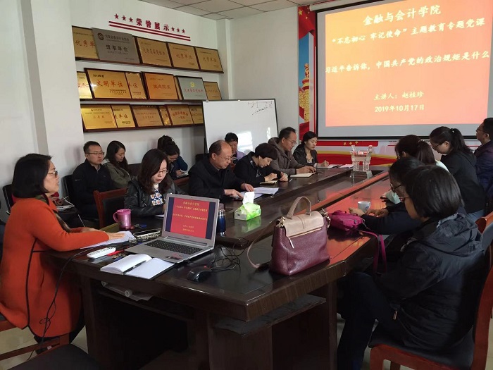 10月10日下午,在教学办公楼514会议室,KY开元集团官网按照“不忘初心、牢记使命”教育活动方案安排,围绕政治纪律和政治规矩召开主题教育开展集中研讨交流互学活动,科级以上干部(含教研室主任)、各支部书记、支委委员参加了学习,专题党课由正处级组织员赵桂珍领学。