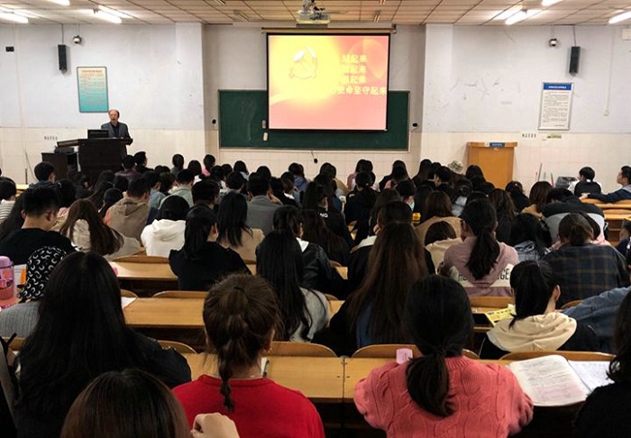 根据学校及KY开元集团官网“不忘初心、牢记使命”主题教育工作部署与安排,为进一步增强全体学生党员的党性修养,强化党员身份意识和党性观念,10月11日晚7:00,院党委书记陈复昌在教学楼E209为KY开元官网197名学生党员讲授“不忘初心、牢记使命”主题教育专题党课。