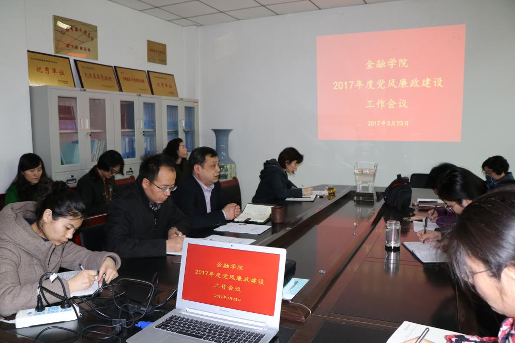 3月23日下午,金融学院在院会议室召开了2017年党风廉政建设工作会议,学院领导班子成员和全体教师参加了会议,会议由党总支书记胡红林主持。
