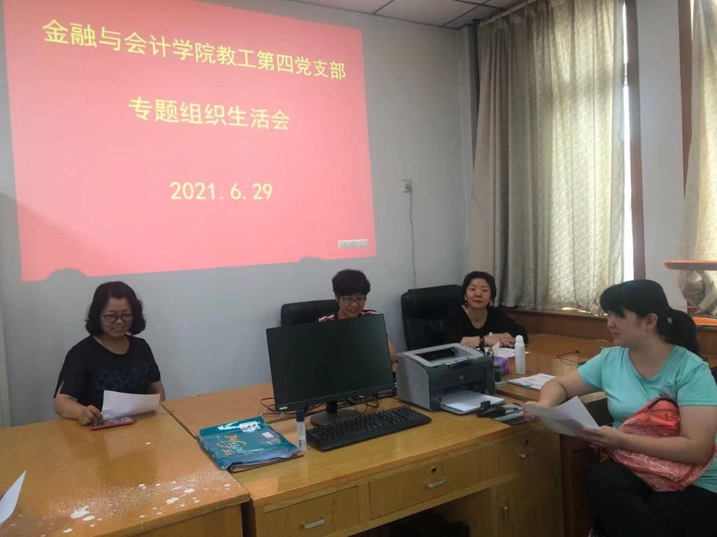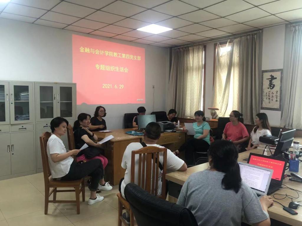 按照学校组织部《关于开展2021年6月份党支部主题党日活动的通知》精神和具体要求,6月29日下午,KY开元集团官网教工第四党支部在510室召开了党史学习教育专题组织生活会。会议由党支部书记邓瑜主持。