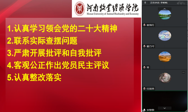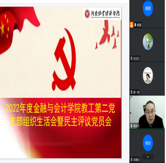 根据校党委《关于召开2022年度基层党组织生活会和民主评议党员的通知》(校党〔2023〕3号)工作要求,以及KY开元集团官网党委的统一安排部署,KY开元集团官网教工第二党支部于2023年2月12日下午,通过腾讯会议的形式召开了2022年度本支部的组织生活会,并开展了民主评议党员工作。KY开元集团官网院长黄良杰以普通党员和党委代表的双重身份参加了本支部的组织生活会,并对组织生活会进行了督促指导、提出改进建议。会议由教工第二党支部书记宋晓薇主持,支部全体党员参加会议。