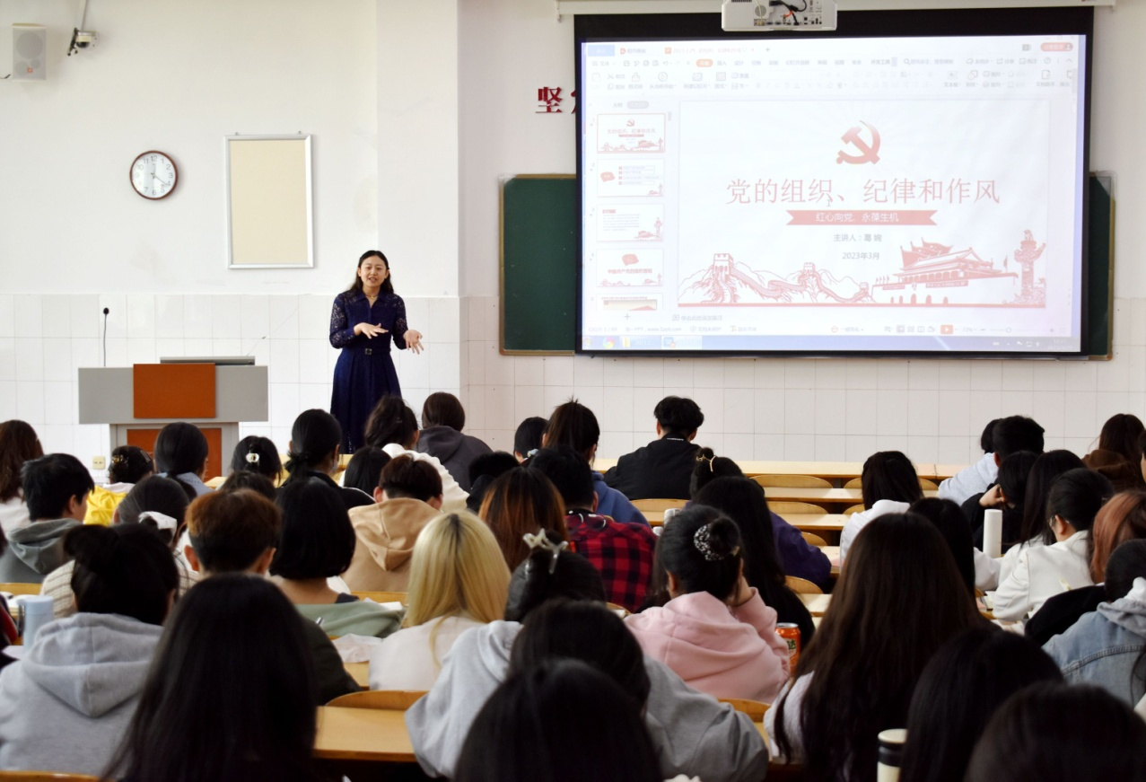 3月29日中午12点,KY开元集团官网2023年第一期入党积极分子培训班第三讲在E310教室举行。本次党课的主题是——党的组织原则、纪律和作风,由学生第二党支部书记葛婉老师主讲。