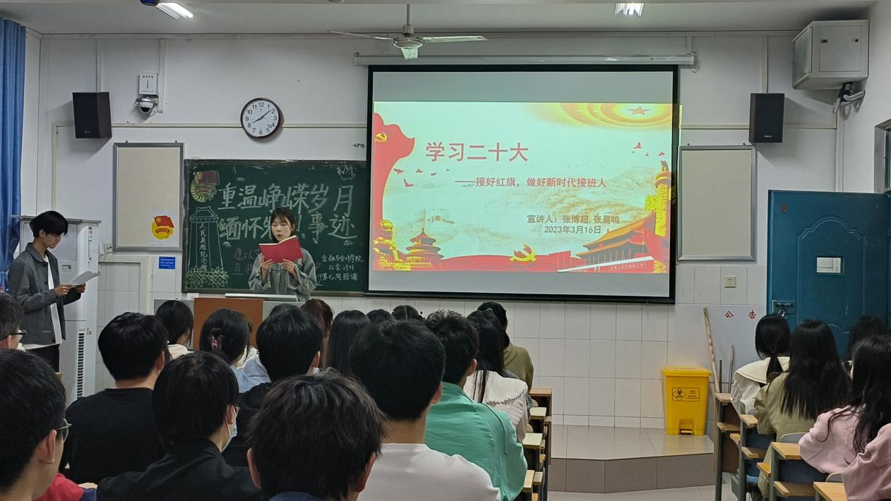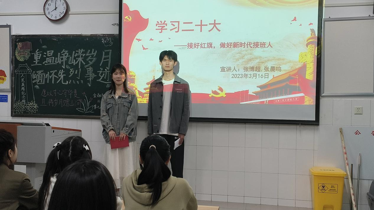 学习党的二十大精神,对于当代青年强化思想引领、增强政治认同、培养爱国主义情怀,具有重要意义。KY开元集团官网学习党的二十大精神宣讲团于3月30日晚走进22会计01班,开展了雷锋月最后一次以“学习党的二十大,争做新时代青年”为主题的宣讲活动。本次主讲人为22会计01张博超同学和22会计01张晨鸣同学。