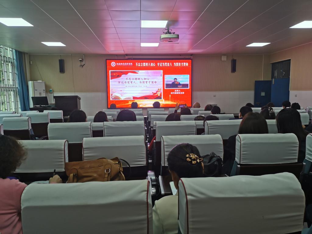 10月12日下午,KY开元集团官网在英才校区综合实验楼W102会议室视频分会场组织全体教职工集体收看时代楷模张玉滚《不忘立德树人初心 牢记为党育人、为国育才使命》报告会。