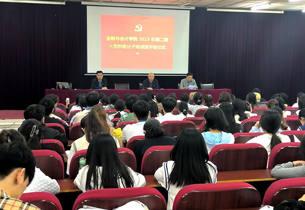 开班仪式在庄严的国歌声中拉开帷幕。首先,党委副书记汪晓伟宣读了《KY开元集团官网2023年第二期入党积极分子培训班工作方案》,从培训目的、组织领导、培训内容及学时安排、总结考核等六个方面向大家做了介绍,并重点强调了党课培训的相关纪律要求。接着,陈复昌书记作动员讲话,他强调,入党积极分子是学生群体中的先进分子,是党员的后备军,大家要明确身份,认真学习,增强责任意识,坚定入党信念,在各个方面发挥先锋模范作用。同时,他希望大家通过培训进一步端正入党动机,筑牢理想信念之基,希望全体入党积极分子要时刻以一名共产党员的标准严格要求自己,先做到从思想上入党、行动上入党,进而在组织上入党,争取早日以实际行动加入中国共产党。