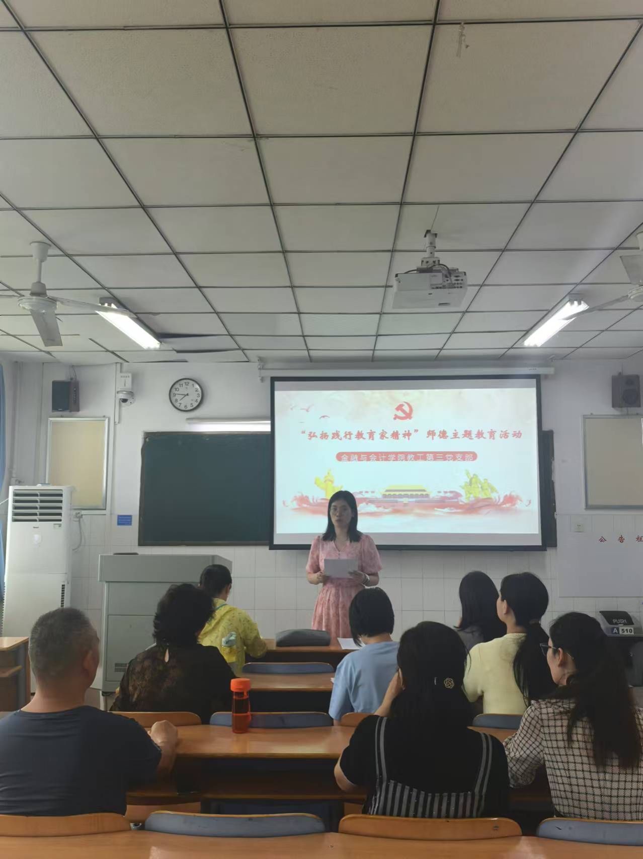 支部书记苗霞同志介绍了学校关于开展“弘扬践行教育家精神”师德主题教育的政策指引、系列活动安排及支部参与活动的情况。她指出在当前推进中国式现代化进程中,基层党组织要坚持贯彻新时代当教育方针,落实立德树人根本任务,强化教育家精神引领,深化教师队伍改革创新,提升教师教书育人能力。宣传委员王静同志带领大家学习《中共中央 国务院关于弘扬教育家精神加强新时代高素质专业化教师队伍建设的意见》的具体内容,主要对加强教师队伍思想政治建设、涵养高尚师德师风、提升教师专业素养、加强教师权益保障、弘扬尊师重教社会风尚等五个方面和十七个具体细则展开深入学习和解读。支部党员教师结合教学工作实际,围绕如何提升教师数字化教学能力,应对高等教育教学改革转型、提升教师专业素养等方面作了交流发言。