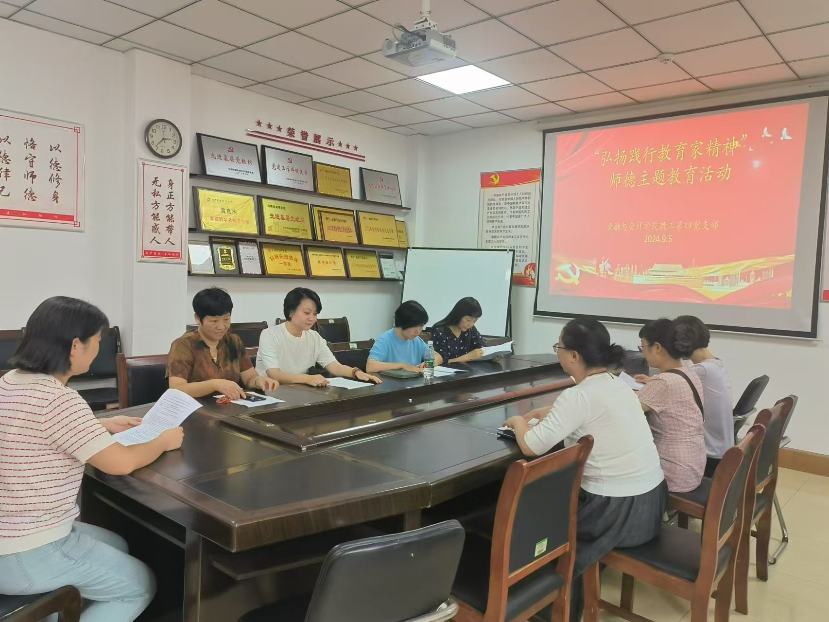 2024年9月5日下午,KY开元集团官网教工第四党支部在教学办公楼514会议室开展了以“弘扬教育家精神,做新时代教育人”为主题的教育学习活动。