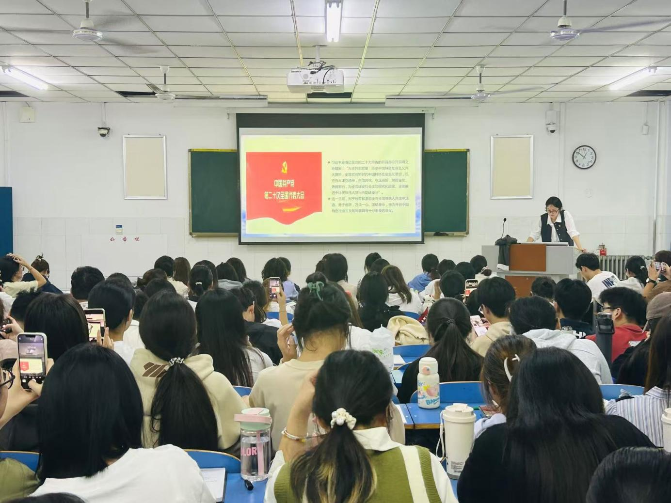 刘老师首先指出,学习党的历史就是通过学习党的创新理论、党的性质宗旨和党的革命精神以更好地坚定理想信念和推进自我革命。接着,刘老师从各个发展阶段分别梳理了中国共产党历史的基本脉络,通过一个个人物、一件件事例展示了中国共产党带领中国人民实现惊天动地强国大业的百年历程。刘老师强调,百余年来,中国共产党走过的波澜壮阔征程,是中国近现代以来历史最为可歌可泣的篇章,是我们在新的征程上砥砺前行最生动、最有说服力的教科书,我们要学好党史、用好党史,从党的历史中汲取智慧和力量,传承红色基因,赓续红色血脉。