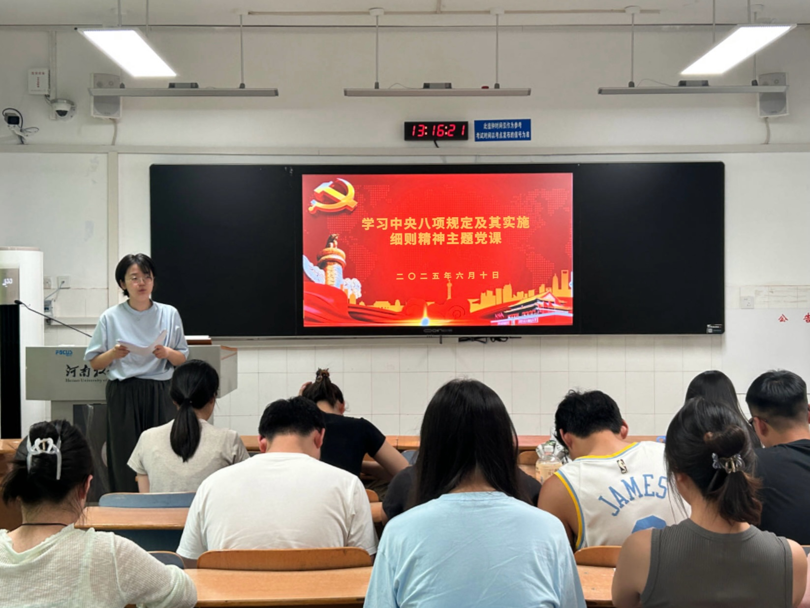 学生第一党支部书记顾自卫以“中央八项规定精神的历史背景与重大意义”为主题,从党的百年奋斗历程中系统梳理党的作风建设的关键节点,深入剖析中央八项规定精神的深层次背景和现实针对性。他着重指出,中央八项规定精神是我们党进行自我革命性锻造的重要体现,是推动党风政风持续改善、赢得人民信任的关键举措。他号召学生党员不断提高政治判断力、政治领悟力、政治执行力,在日常学习生活中时刻做到心中有党、言行守纪。