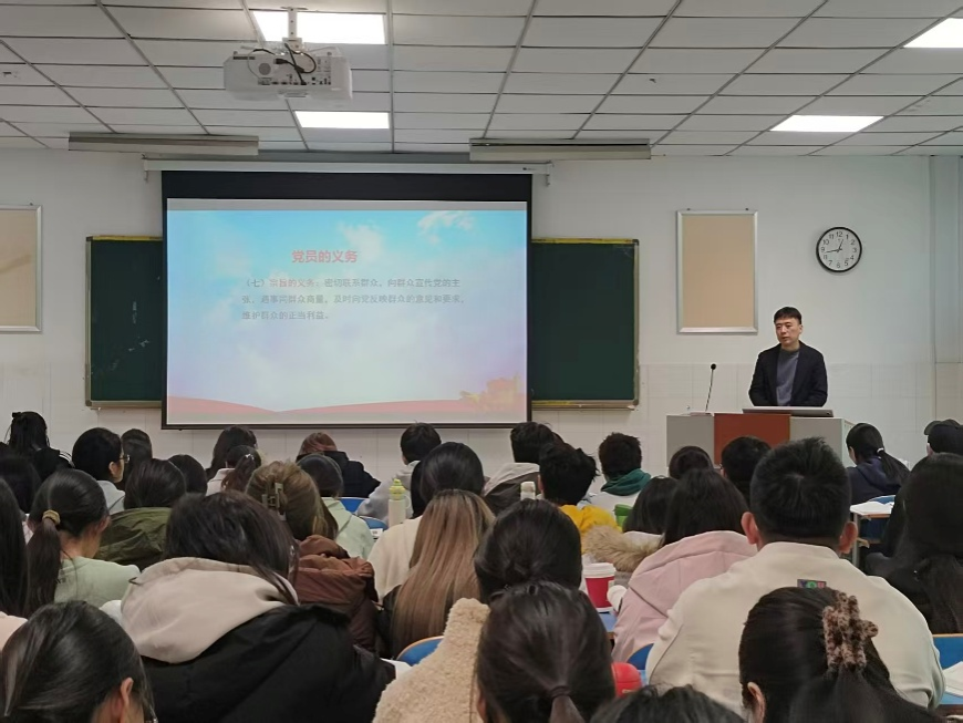 本次培训内容包含“党员的基本条件”“党员的义务与权利”“肩负历史重任,做合格党员”三个方面。首先,汪书记以中华人民共和国成立前后中国社会发生的翻天覆地的变化为切入点,带领学员们深入学习中国共产党的性质与宗旨。他指出,学员们要端正自身的入党动机,必须加强理论学习,只有不断学习,才能将对党的认识从感性层面提升到自觉、理性的高度,才能用科学、先进的理论武装自己的头脑。