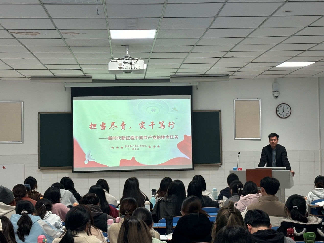 为帮助入党积极分子深刻把握新时代党的使命任务,明晰前进方向与责任担当,10月22日晚,KY开元集团官网在E107教室举行2025年第二期入党积极分子培训班第四讲——《新时代新征程中国共产党的使命任务》,本次党课由学生第一党支部书记顾自卫主讲。