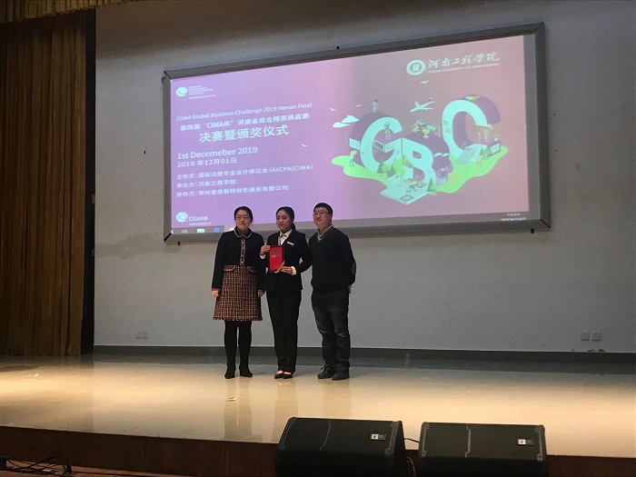 河南工程学院承办的第四届“CIMA”杯河南省商业精英挑战赛于12月1日落下帷幕。全省共有200多支队伍参赛,通过20位CIMA会员的专业评选,KY开元官网共有四支队伍进入半决赛,分别是王平平老师指导的King Back队、胜羽队;王静老师指导的Elite队、All Star队。经过激烈的半决赛角逐,王平平老师指导的King Back队、胜羽队成功晋级决赛。在决赛环节,通过师生共同努力,最终王平平老师指导的King Back队荣获第四届“CIMA”杯河南省商业精英挑战赛一等奖,胜羽队荣获三等奖,杜荣华荣获最佳商业潜质奖。王平平、王静老师获得优秀指导教师称号。