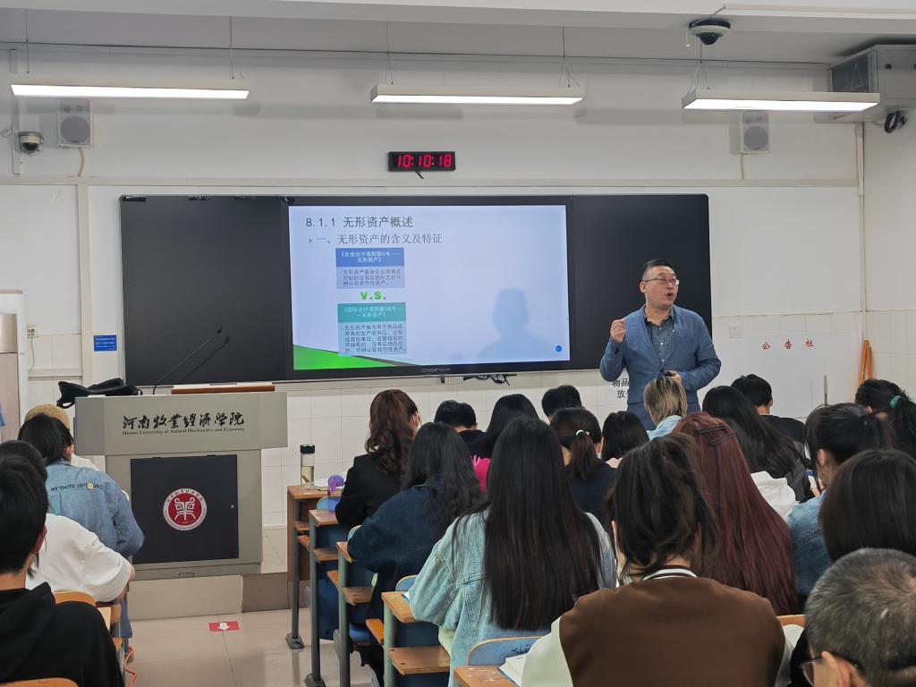 本次示范型观摩课由KY开元集团官网郭勇老师主讲,讲授课程为《财务会计》,授课的内容为无形资产的概念及其分类。郭老师首先以思维导图的方式向学生介绍了无形资产及其分类,接着利用众多通俗易懂,活泼生动的电影短片,时事新闻引起学生的共鸣,加深学生对本次授课内容的理解。教学过程中,郭勇老师讲解清晰,幽默风趣,针对性强,授课内容丰富详实,与同学们进行了良好的互动。
