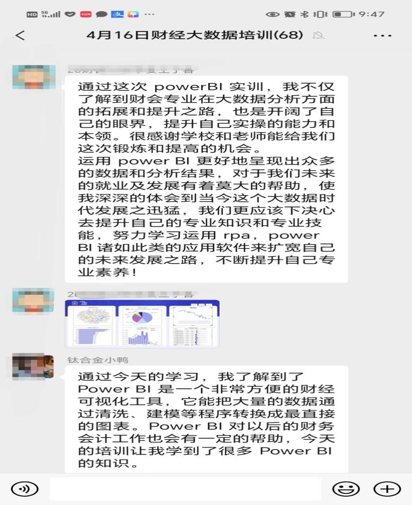 本次培训最终有50名学生确认参训,课堂上学生们通过运用power BI技术工具,对三家医药公司的数据进行分析和可视化,深刻体会到计算机工具的应用对于数据分析和管理决策的重要性,也明确了社会对于人才的需求已经转向专业技术+计算机技术的复合型人才。另外,沈阳跃客也将自己开发的RPA教学平台对同学们进行了操作展示。培训结束后,学生们也在培训群中充分表达了此次系列培训对于他们开阔眼界、提高实操能力、提升专业素养、拓宽未来发展之路,是非常好的锻炼机会。