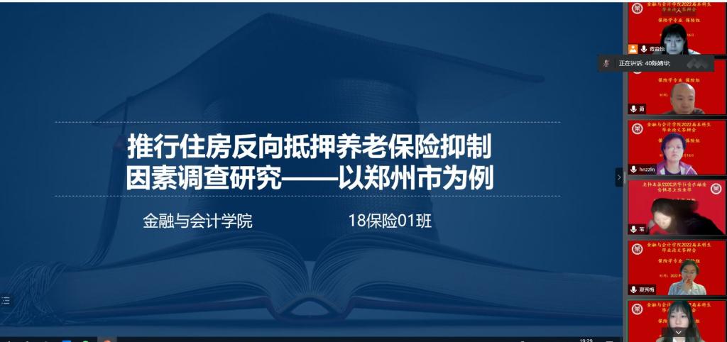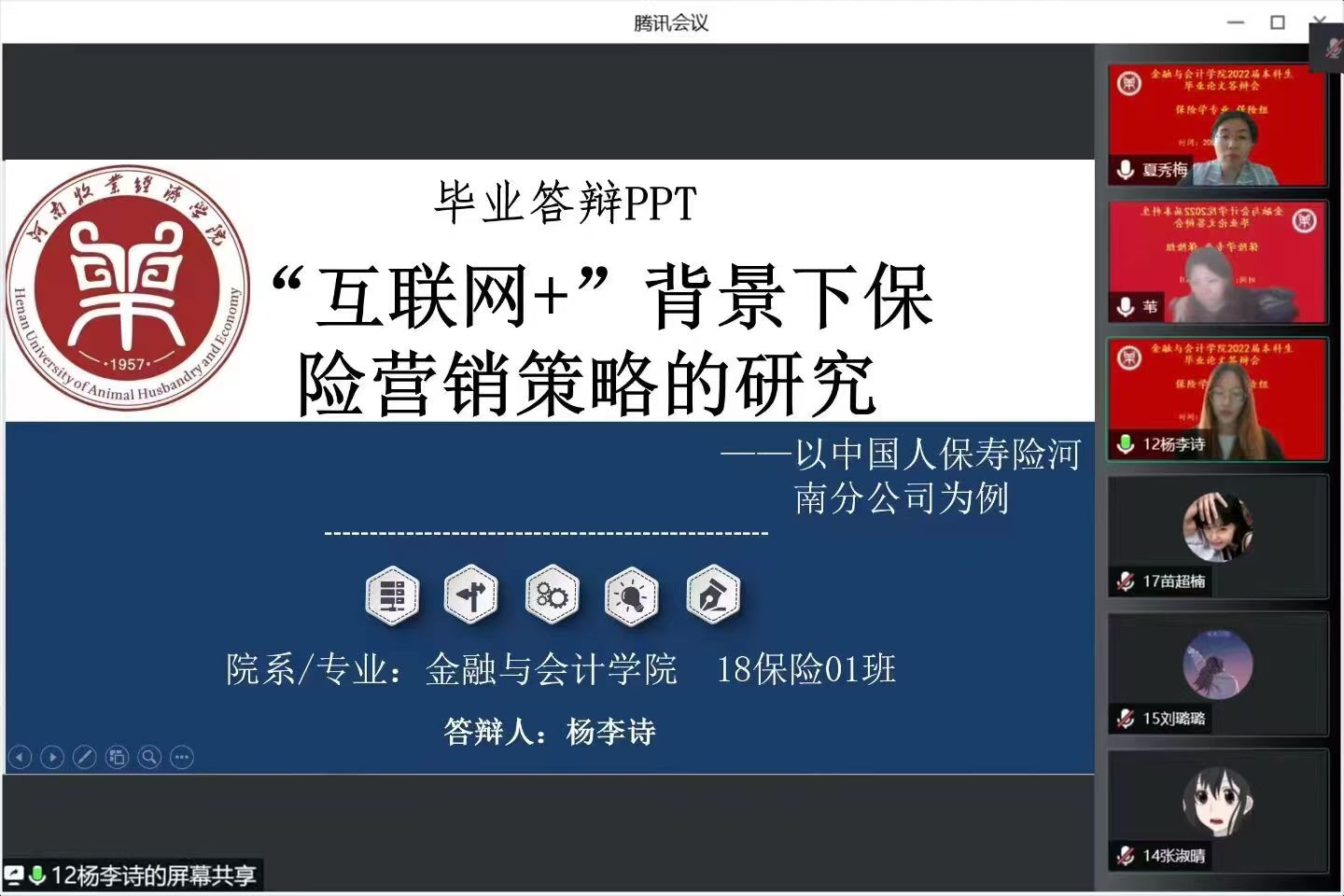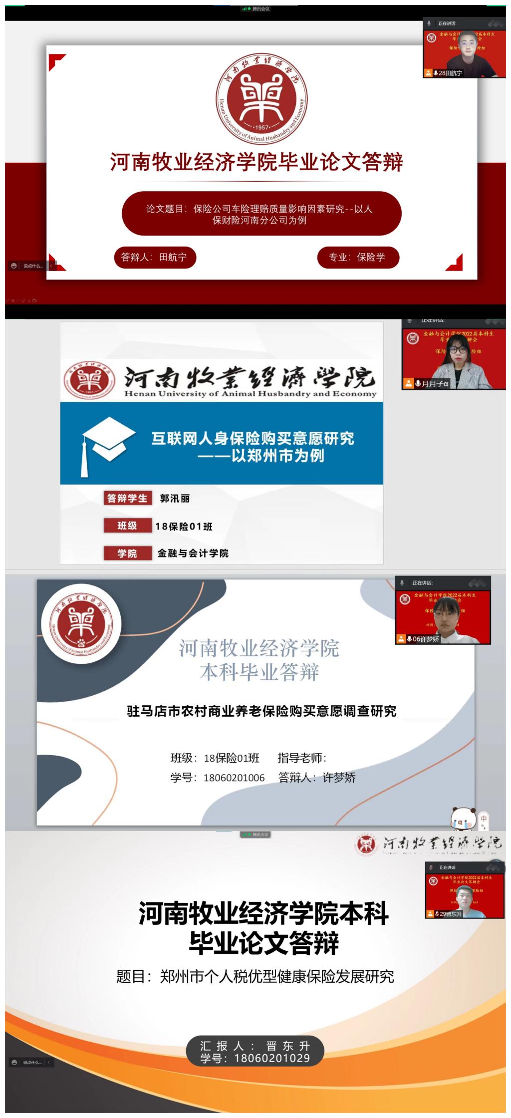2022年5月16日, KY开元集团官网2022届保险学本科生顺利完成了毕业论文答辩。因受疫情影响,按照学院安排,本次论文答辩采用线上答辩的方式进行。