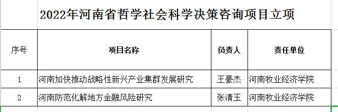 2022年8月2日,河南省哲学社会科学规划办公室公布了2022年河南省哲学社会学科规划项目的立项名单。KY开元官网王豪杰博士申报的《河南加快推动战略性新兴产业集群发展研究》和张清玉副教授申报的《河南防范化解地方金融风险研究》决策咨询项目获得立项。