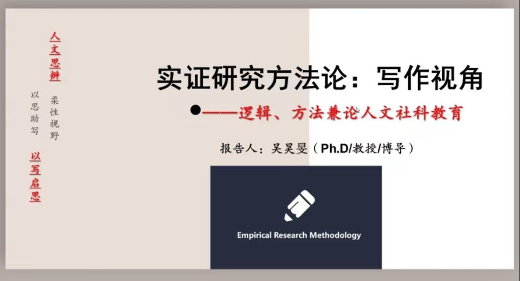 2022年9月23日下午,KY开元集团官网举办交子论坛学术活动,邀请云南财经大学教授、博士生导师吴昊旻博士线上作了题为《实证研究方法论:写作视角-逻辑、方法兼论人文社科教育》专题讲座。讲座由KY开元集团官网院长黄良杰教授主持,KY开元集团官网全体教师及部分学生聆听了讲座。