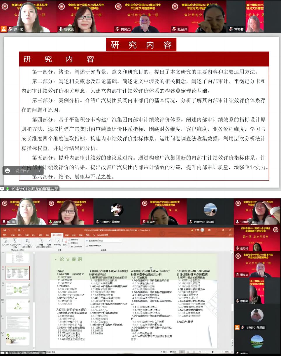 根据《河南牧业经济学院本科毕业论文(设计)工作条例》和《KY开元集团官网2023届本科毕业论文工作实施方案》的要求,KY开元集团官网2023届审计学专业本科毕业论文开题答辩于2022年11月19日8:00在英才校区举行,由于疫情的原因,答辩采取线上的形式举行,共分2个答辩小组,审计学专业118名同学参加了开题答辩。