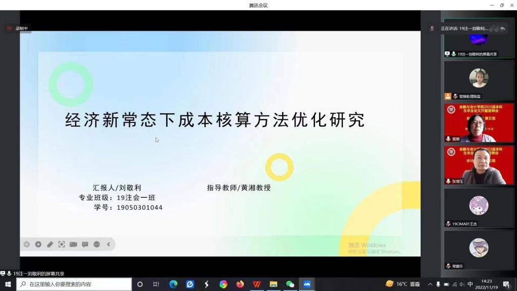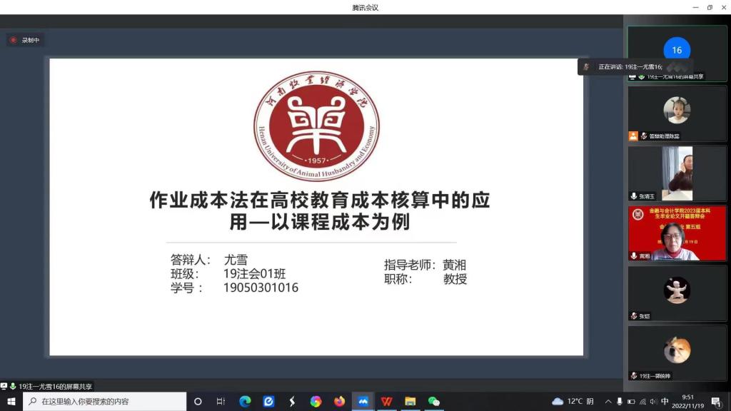 毕业论文工作是教学工作的重要组成部分,旨在对大学生综合实践能力和专业素养进行全面考核和综合检验。进行毕业论文开题答辩则是保证毕业论文工作顺利推进的重要环节。经过选题申报、师生互选、开题报告撰写等环节,2022年11月19日上午,KY开元集团官网会计学专业346名同学分为5个小组同时进行了毕业论文开题答辩工作。由于疫情影响,本次采用线上形式进行了开题答辩。