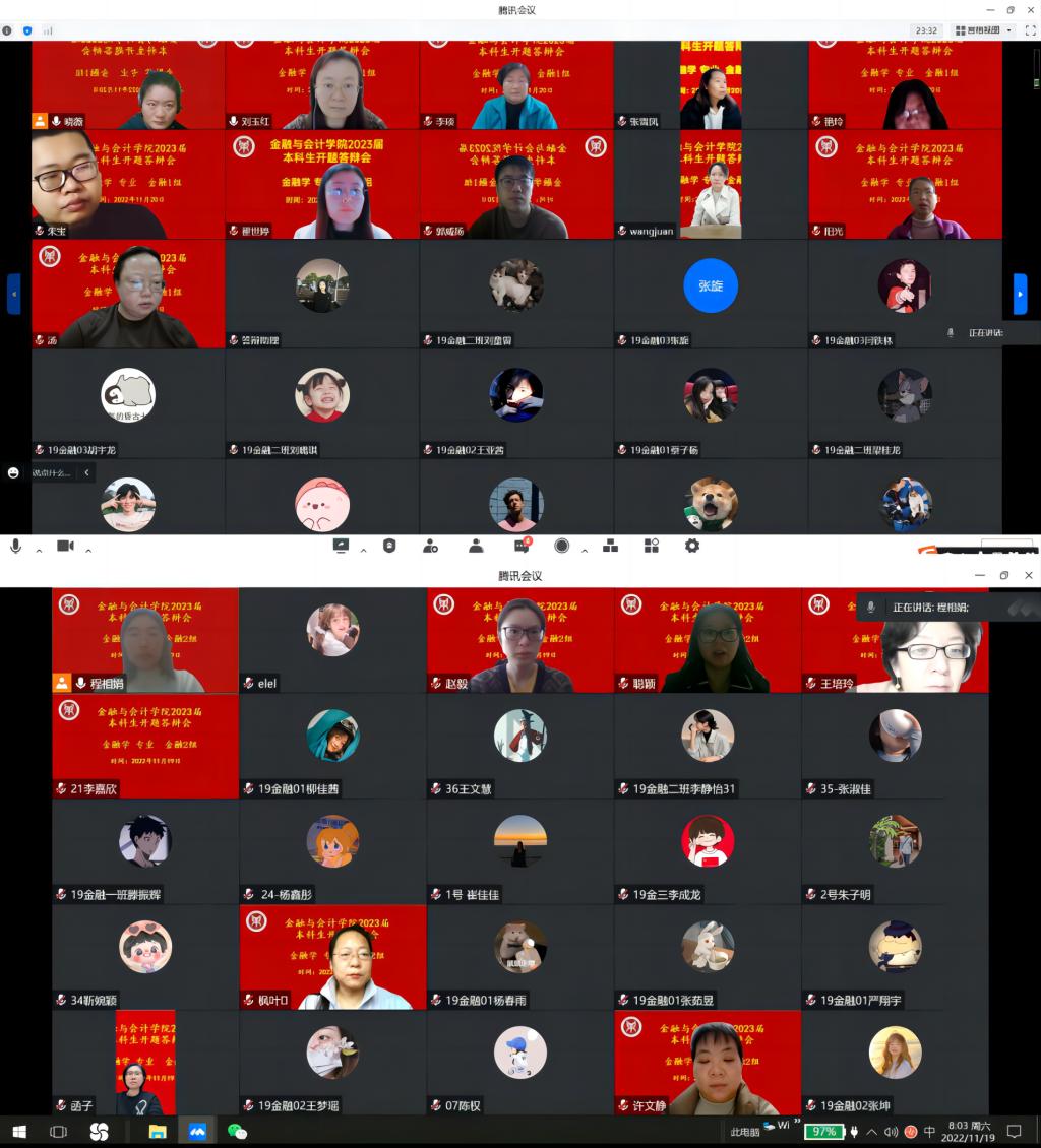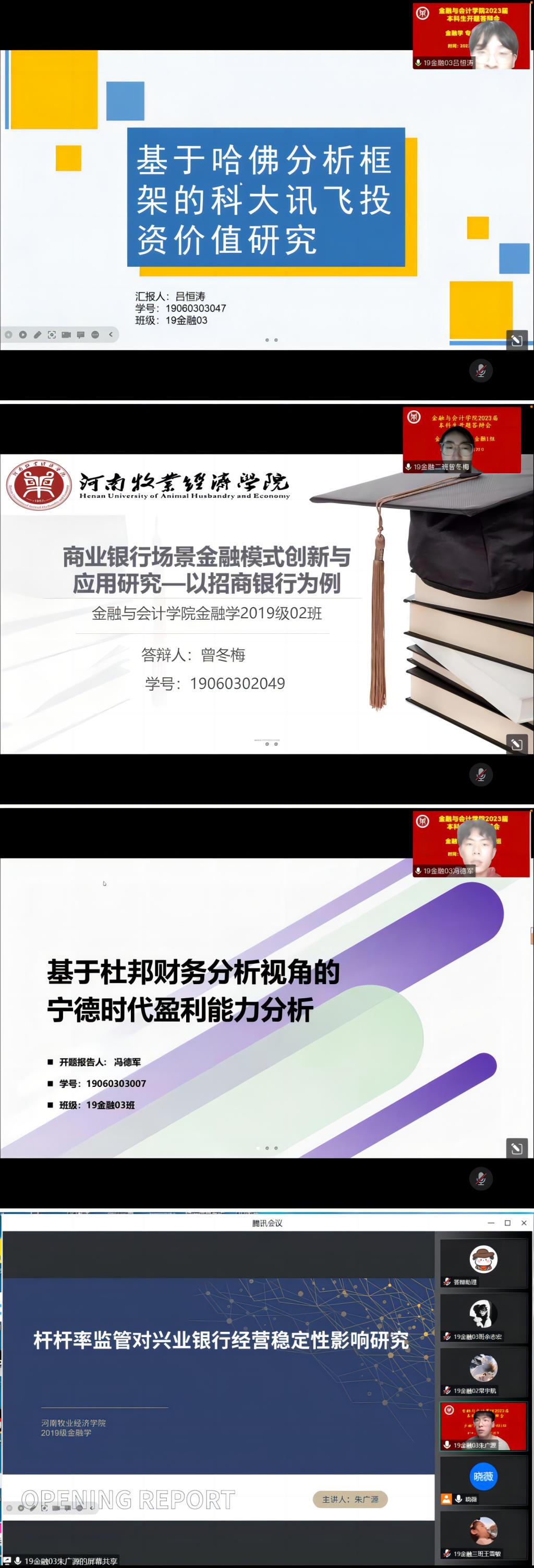 根据《河南牧业经济学院本科毕业论文(设计)工作条例》和《KY开元集团官网2023届本科毕业论文工作实施方案》的要求,KY开元官网2023届金融学本科专业毕业论文开题答辩于2022年11月19日、20日两天举行,本次答辩采用线上方式举行,共分为两个答辩小组,共有163名学生和19名指导老师参加开题报告答辩会。