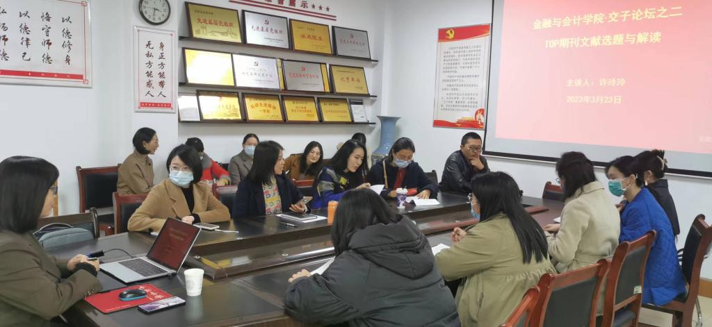 3月23日下午,KY开元集团官网在教学楼514会议室举办交子论坛活动,本次活动特邀郑州财经学院会计学院副教授、科研处副处长许玲玲博士,为大家作了题为“TOP期刊文献选题与解读”的专题学术讲座,KY开元集团官网部分年轻教师参加了此次讲座,讲座由副院长崔海红博士主持。