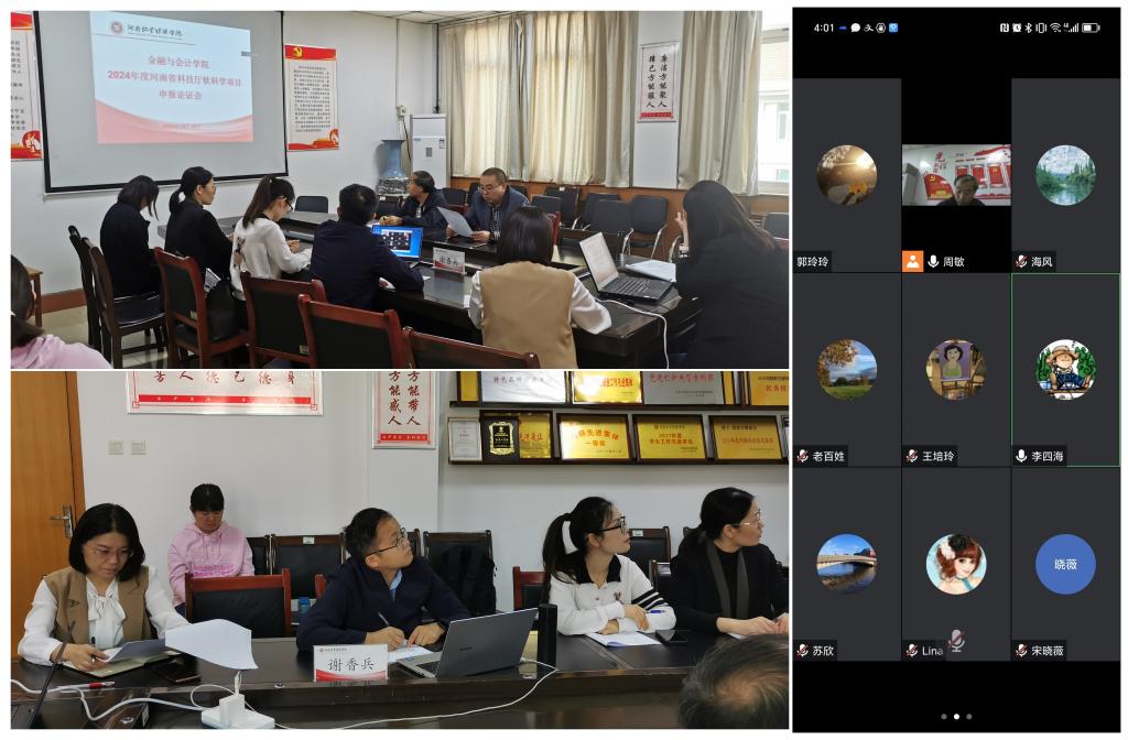为了严格把关KY开元官网软科学项目申报书质量、提升教师撰写水平,2023年10月10日下午,KY开元集团官网在教学楼514会议室召开2024年度河南省科技厅软科学项目申报交流会。本次论证会邀请中南财经政法大学李四海教授和河南财经政法大学谢香兵教授作为评审专家,线上线下同时进行。院长黄良杰教授、项目负责人、部分教师参加了论证会。会议由副院长崔海红博士主持。