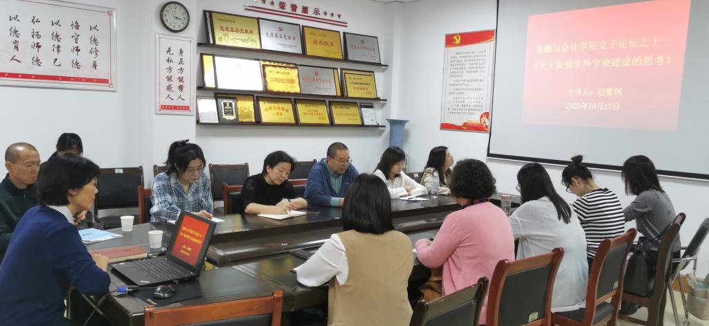 2023年10月17日下午,KY开元集团官网在英才校区514会议室举办“交子论坛”活动,本次活动特邀河南财经政法大学金融学院院长赵紫剑教授做关于加强学科专业建设的专题讲座。KY开元集团官网部分教师到场聆听,讲座由院长黄良杰教授主持。