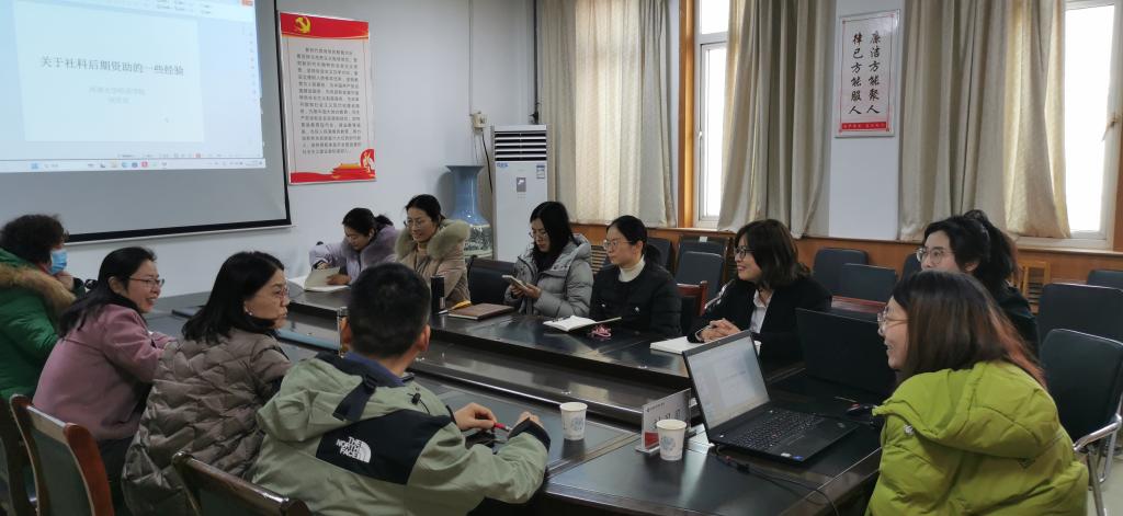 刘贝贝博士从介绍国社科后期资助项目开始,对前期准备的材料、如何去申请、如何去结项等方面详细讲解,并讲述了自己申报国家基金项目的心路历程,就国家社科基金后期资助项目申报注意事项、需要提交的一些材料以及成果出版等方面进行分享,就老师们关心的问题进行详尽回答。刘贝贝博士的分享获得了大家的一致好评,与会教师纷纷进行深入讨论,积极交流学习。