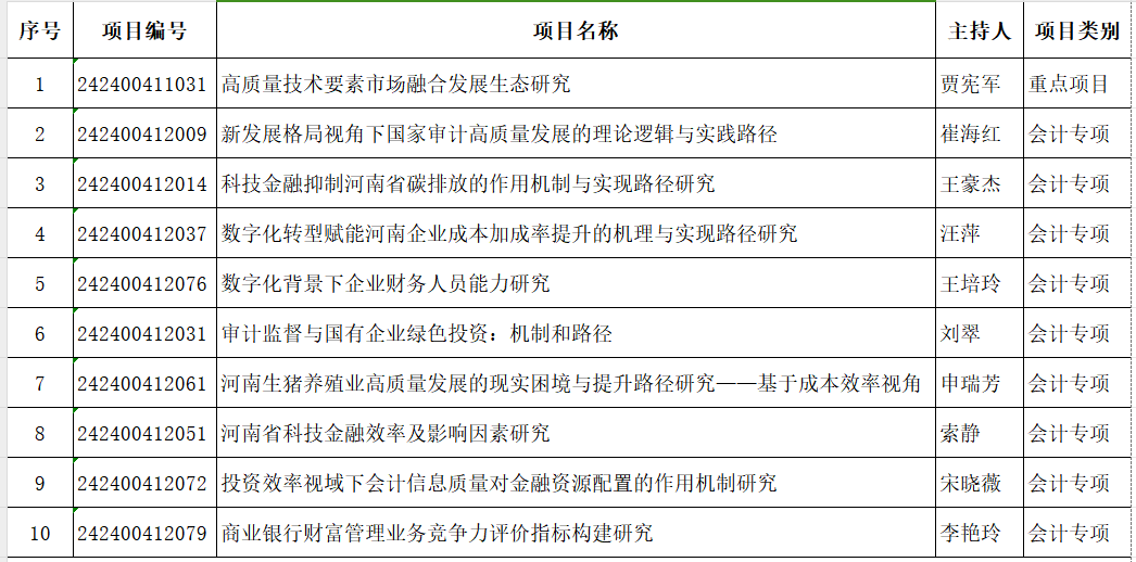 近日,河南省科技厅公布了2024年河南省科技发展计划名单(豫科〔2024〕42号),KY开元官网有10位老师喜获2024年河南省科技厅软科学研究项目立项。