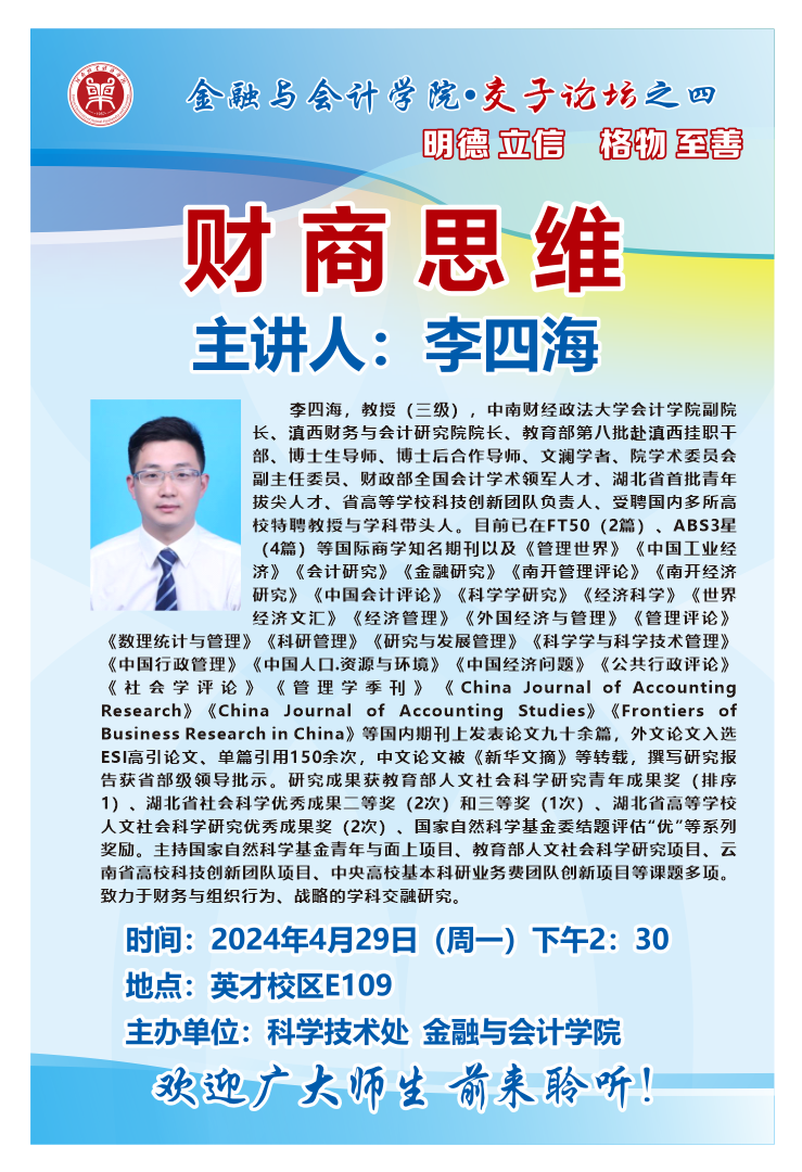 讲座海报:KY开元集团官网2024年交子论坛之四