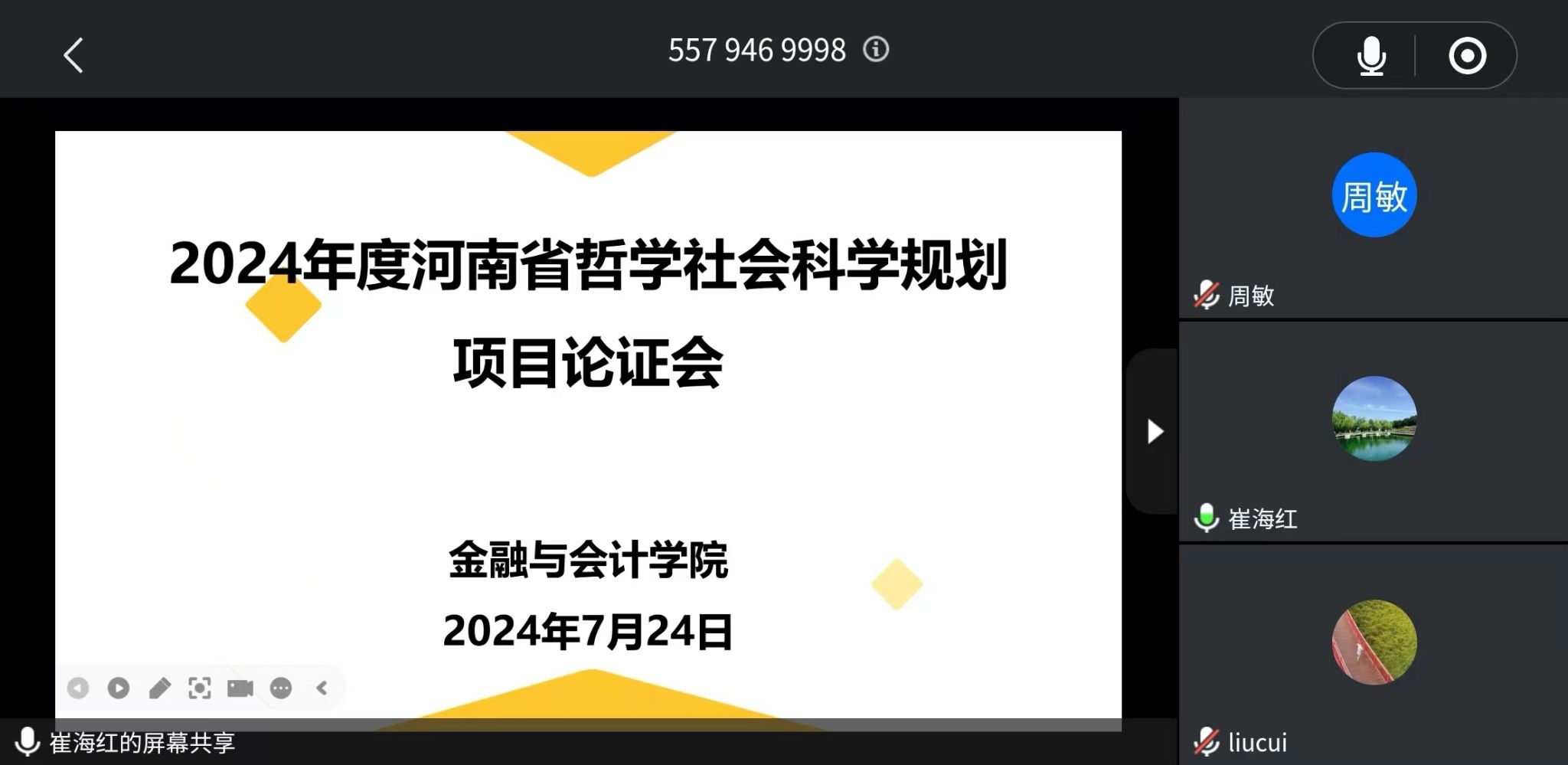 7月24日晚上7:30,KY开元集团官网在腾讯会议召开2024年度河南省哲学社会科学规划项目申报论证会,本次论证会特邀中南财经政法大学李四海教授和吕勇斌教授为评审专家,项目负责人及部分教师参加了论证会。会议由KY开元集团官网副院长崔海红博士主持。
