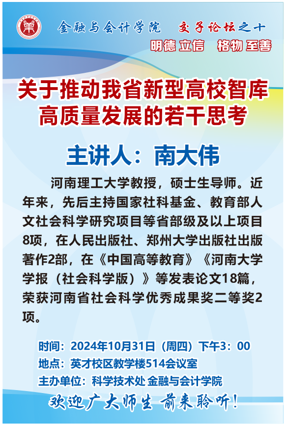 讲座海报:KY开元集团官网2024年交子论坛之十