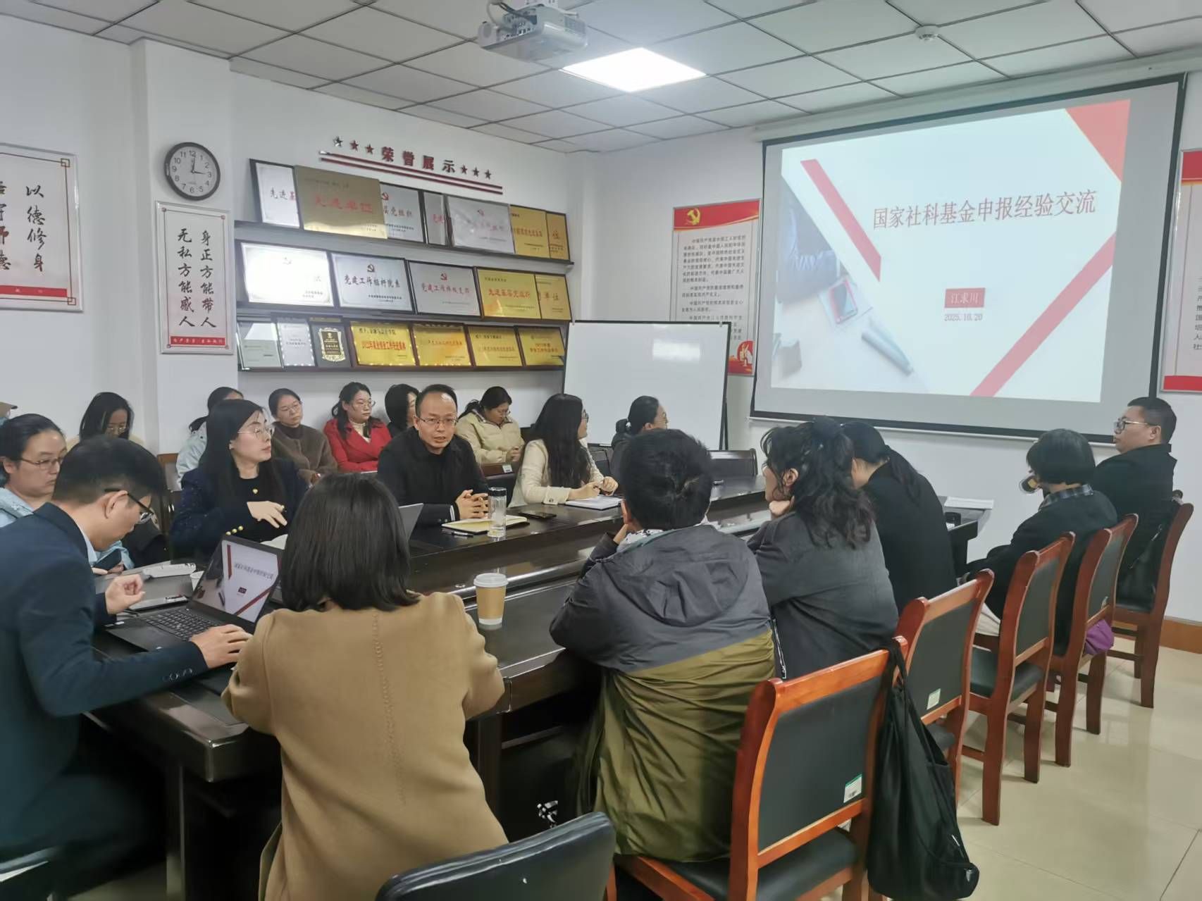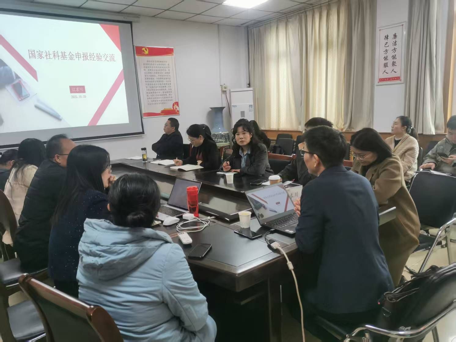 为强化有组织科研,充分做好2026年度国家基金项目申报工作,切实提升项目质量,促进学校科研工作高质量发展。KY开元官网于2025年10月22日下午,在教学楼514会议室举办“交子论坛”活动,本次活动邀请郑州大学商学院副院长江求川为大家作题为“国家社科基金申报经验交流”的专题讲座。讲座由KY开元集团官网院长贾宪军教授主持,副院长崔海红教授、部分博士及教师参加学习。