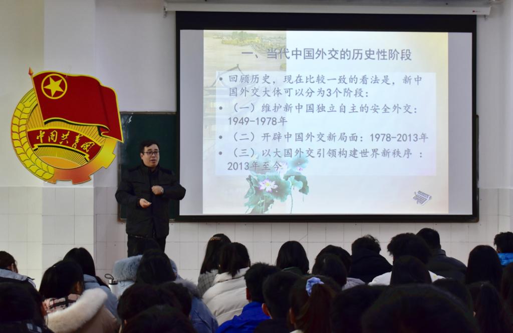 为增强学生民族自信心和自豪感,12月9日中午12:30,KY开元集团官网2020年“青马工程”大学生骨干培训班第六讲于E209教室顺利举行。本次培训由马克思主义学院博士陈豪主讲,培训主题为“当代中国外交:成功与启示”。