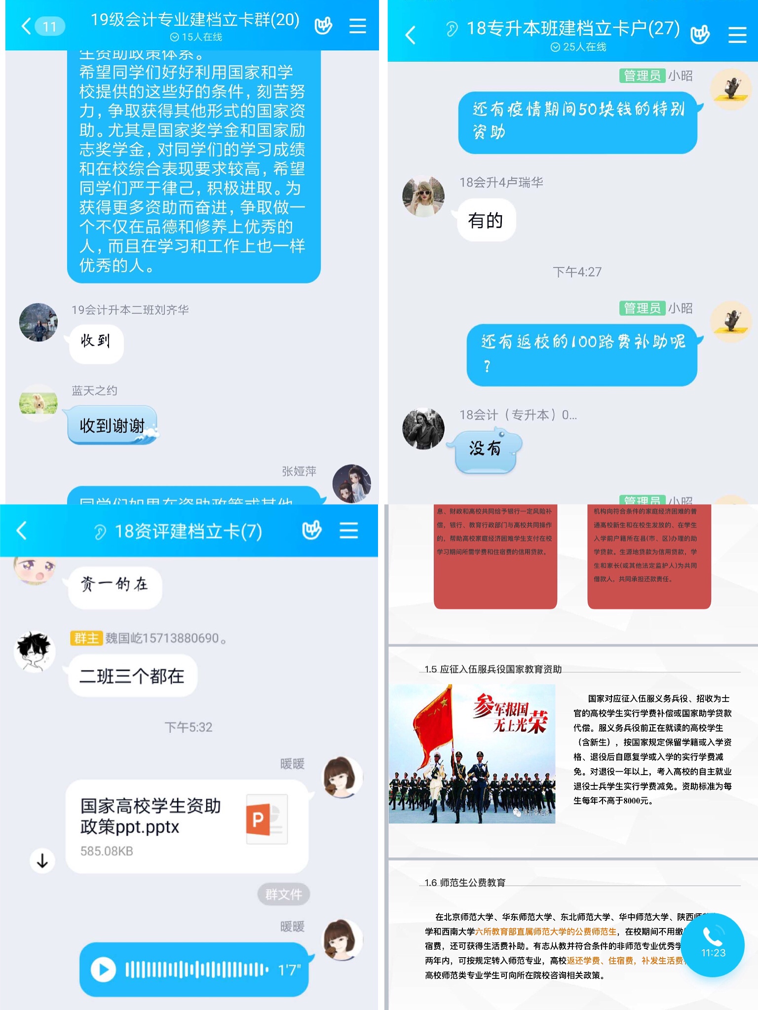 根据当前新冠疫情防控的实际情况,以及全覆盖、无死角的走访要求,KY开元官网以辅导员老师为单位,对全院217名建档立卡学生通过电话、视频、QQ等形式进行线上走访宣传。此次活动共分三个部分,一是对国家及KY开元官网现行的资助政策的宣讲,使同学们更好的了解国家高校学生资助政策,避免因家庭经济困难而影响学业;二是告知学生家长在2019-2020学年学生的已受资助情况;最后是查看2019 年底《建档立卡贫困家庭学生温馨告知书》的发放和张贴情况。