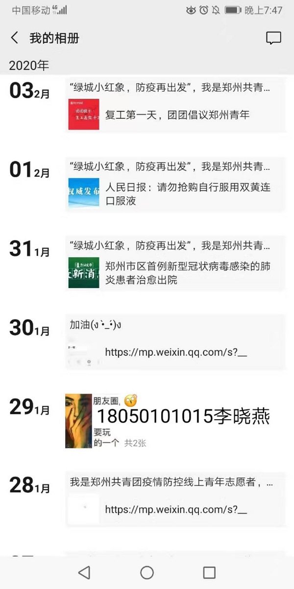 18级财务管理一班的张瑞静和李晓燕,在假期期间参与了青年志愿者协会,并且组成了环手爱疫情防控小分队。自一月份至如今,在郑州共青团的指示下,她们每天线上向人们宣传相关疫情知识与防控等。志愿者们足不出户一方面宣传了疫情,另一方面避免了感染的风险。她们的初衷是:全心全意为人民服务,为这次疫情的防控起到积极向上的作用,用实际行动告诉大家,只要中国人民团结一心,任何困难都将会被克服。