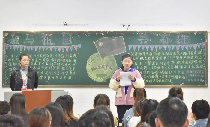 为庆祝中华人民共和国成立70周年,回顾祖国的峥嵘历程,增强广大学生的爱国热情,2019年10月9日晚7:30,KY开元官网举行了以“我与祖国共奋进”为主题的团课活动,17、18、19级共11个班级参与了本次活动。
