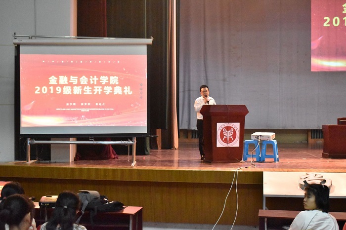 开学典礼在全场庄严的奏唱国歌声中拉开帷幕。KY开元集团官网院长黄良杰首先代表全院教师表达了对新生的诚挚欢迎。他向新生介绍了院史和校情,并指出同学们要以“明德立信、格物至善”的院训为指引,以青春岁月换得良好的品德、丰富的知识,在大学中获得真挚的友情和健康的体魄,让学校成为同学们内心深处的精神家园。谈话中,他还从做人、做事、养成学习的习惯和能力三个方面对新生提出要求:一是希望新生在今后大学的学习生活中,学会做人做事,要遵守职业操守、职业道德。通过案例的分享,强调同学们在大学树立起正确的价值观、人生观和事业观。二是希望同学们能够做好学习计划与总结,致力养成终身学习的行为习惯和逻辑思考能力。他以自身专业角度出发,向同学们介绍了有关考研以及考取证书的相关信息,并以当前在校生学习现状为例,强调自身学习规划的重要性,激发同学们的学习热情。三是希望同学们能够经常与父母保持联系,注重家庭与学校生活的和谐共处,并强调同学们在校期间注意财产与自身安全,顺利度过大学四年的学习生涯。