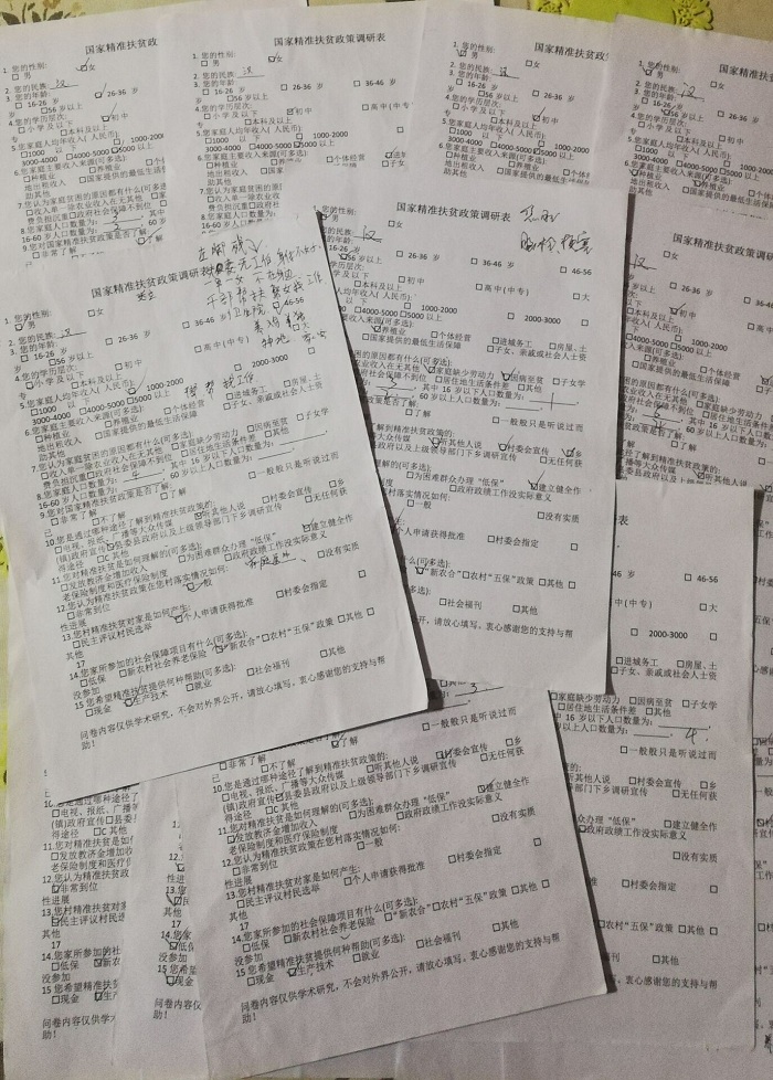 在五天的走访中,志愿服务队以调查当地贫困户家庭基本情况,普及金融基础知识为目标,徒步走访背孜乡盐店村贫困户家庭。通过实地考察,当地的贫困与居住地势有密切关系,因环绕大山、交通不便、耕种土地面积少等自然因素阻碍了当地经济发展。通过入户调查,当地村民引起贫困的最主要原因是因病致贫,最主要的收入来源是外出务工,因此,缺乏劳动力的家庭、有重患疾病的家庭,在当地是最为贫困的。其次,无法外出的村民,多以养殖、种植为生,但受当地自然条件限制,还是无法满足村民的生活需求,因此他们最需要的是科学的养殖、种植技术。
