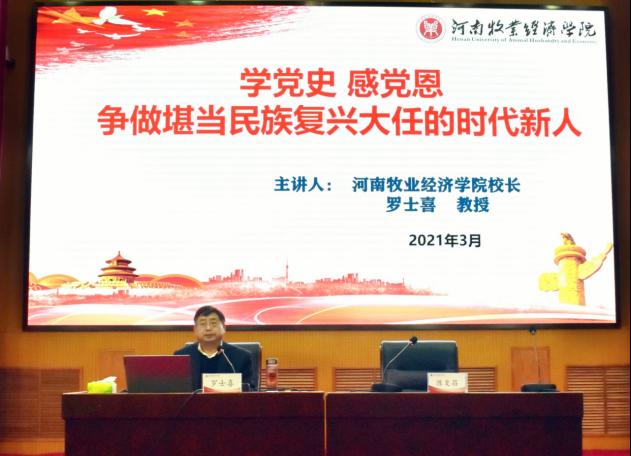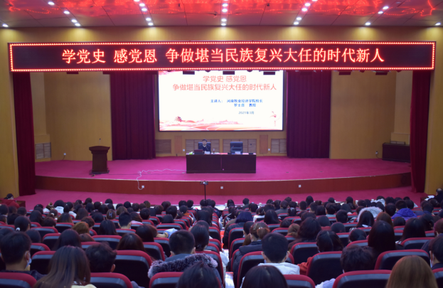 3月8日晚7点,校长罗士喜教授在英才校区学术报告厅为KY开元集团官网师生以《学党史 感党恩 争做堪当民族复兴大任的时代新人》为题讲授开学思政第一课,KY开元集团官网领导班子、全体辅导员老师及部分学生代表聆听了本次报告,报告由学院党委书记陈复昌主持。