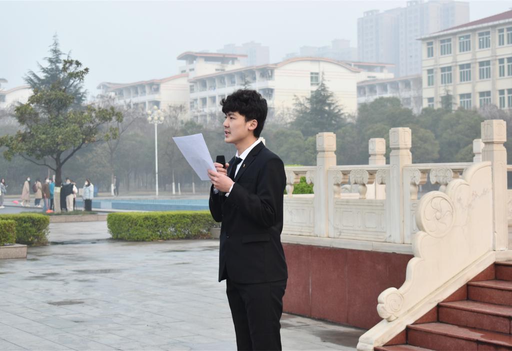 学生代表宋兴昊进行了国旗下的演讲,他号召广大学子要坚定理想信念、厚植爱国情怀、锤炼品格修身立德、要努力学习,不断增长知识才干,弘扬奋斗精神,勇做担当民族复兴大任的时代新人,为祖国的繁荣发展、中华民族伟大复兴贡献自己的一份力量。